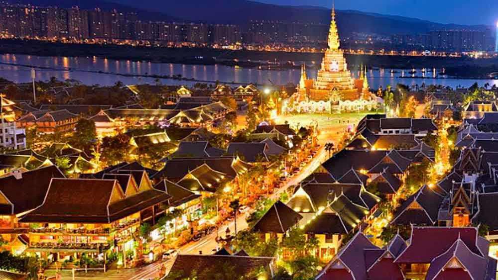 早餐后前往【傣族特色文化体验区】、【土特产乳胶店】;享用中餐后前往游览南传佛教的标志性建筑【勐泐大佛寺】,在这里拜大佛、观赏孔雀东南飞、参与泼水狂欢;之后晚餐后前往【告庄西双景】,独家定制告庄西双景“疯”派对:打卡夜色告庄、船游水上六国、赶摆星光夜市,在版纳星空下,傣家歌舞伴餐,啤酒无限畅饮。