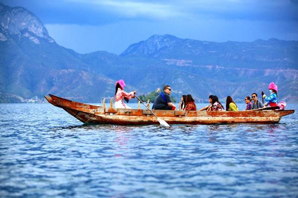 第五天 划猪槽船登里务比岛—里务比寺—摩梭家访—情人滩—里格半岛观景台—乘火车返回昆明