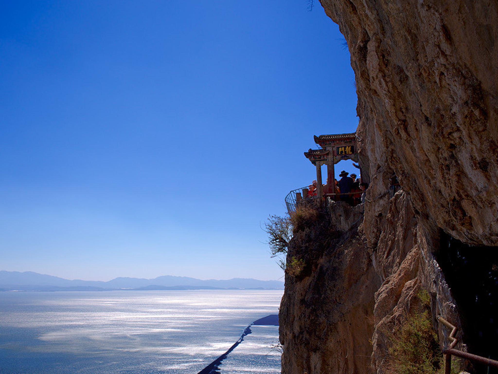 顺着【里务比岛】满是野樱花和杜鹃的石板小路层层而上,山顶的藏传佛寺【里务比寺】是俯瞰我心房最佳的位置。耳边是虔诚藏民的转经声,空中还有许愿牌撞击风铃的清脆回响,若你此刻低头,就会看到我蓝宝石一般通透的心,在这无人之境,与你浪漫心心相印!