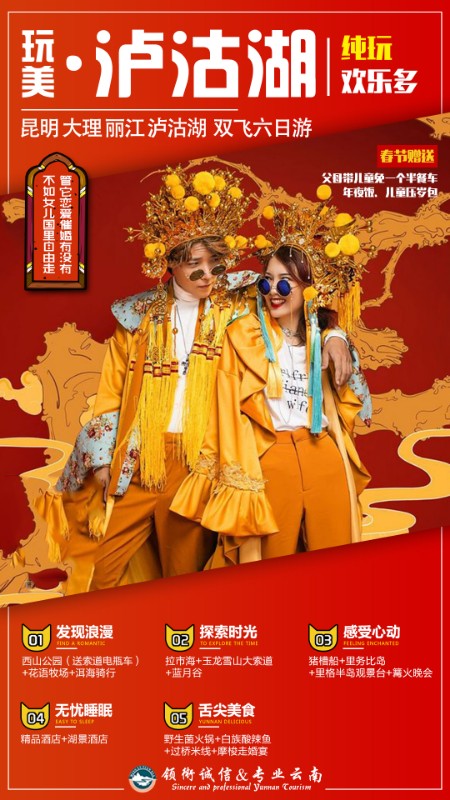 【玩美泸沽湖】 昆大丽泸双飞一卧6日游