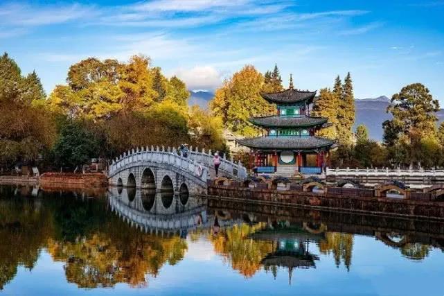 随后游览丽江旅游景点中的璀璨明珠【黑龙潭公园】 始建于乾隆二年,是丽江重要的文化传承。其中东巴文化研究院是全球东巴文化研究最具权威的机构之一;碑林是收藏名碑最多的纳西族文化艺术宝库;位于龙神祠前的古戏台,是丽江地区最古老的戏台之一。公园内古建筑林立,五凤楼、龙神祠、万寿亭、相思桥等无一不是精巧绝伦建筑典范;其中以五孔桥、得月楼、雪山及黑龙潭中的雪山倒影组成的影像“龙潭映雪”是丽江的经典风光明信片,也是游人在丽江拍照最多的取景之一。