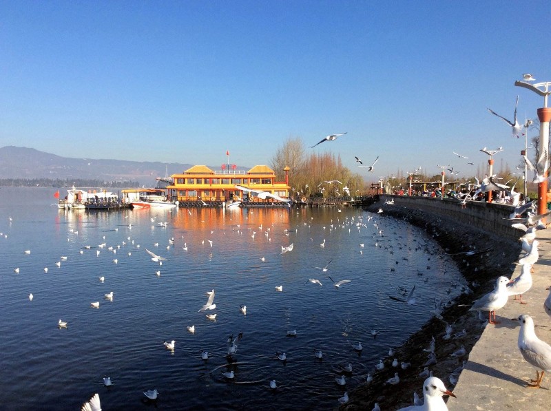 早餐后,乘车前往游览[滇池大坝](游览时间约40分钟),每年11月至次年3月,成千上万只西伯利亚远涉来昆的精灵“红嘴鸥”云集昆明,已成为昆明人民的骄傲和一道独特的风景线,准备好来一场“鸥”遇了吗!