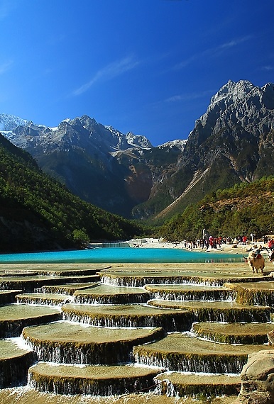 午餐后,乘车赴丽江,乘坐【冰川大索道】(游览时间约180分钟)(含雪山防寒服,赠送小瓶氧气)游览纳西族的神山(★旺季黄金周大索道承载能力有限,玉龙雪山风景区提前实行限票管理制度,如遇无法正常安排的情况下,更改为云杉坪索道,并现退差价)从海拔3000米的草甸出发,穿越高大挺拔的各种松林杉树,到达海拔4506米高的雪山冰川,欣赏大自然恩赐的美景(游览约90分钟,不含排队及乘车时间)。游览高原上璀璨明珠——【蓝月谷】(含电瓶车60元/人),体会大自然的神奇与壮美。