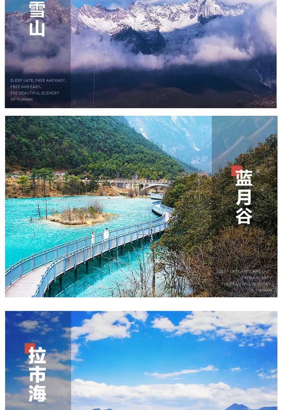 自费项目:玉龙雪山氧气瓶100元/人,防寒服50元/人,蓝月谷电瓶车60元/人,拉市海骑马298元/人,