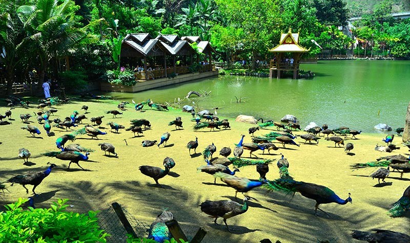 午餐用特色【象餐】后前往游览AAAA级风景区【曼听御花园】(游览2.5小时左右,可自费参加电瓶车40元/人),曼听公园是西双版纳最古老的公园,已有1300多年的历史,过去是西双版纳傣王的御花园,在傣族历史上曾为封建领主召片领和土司们游玩赏花之所。传说傣王妃来公园游玩时,公园的美丽景色吸引了王妃的灵魂,因此取名春欢公园,傣意为“灵魂之园”。参观周恩来总理铜像,观看大型鸟艺表演,和调皮的大象表演跳街舞,踢足球。。。。。穿越黑心树林,亲临传说中的蓝孔雀合影。