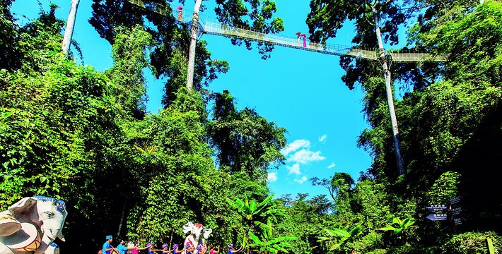 早餐后,乘车前往西双版纳热带雨林国家公园【望天树】(含单程游船40/人)【车程:120分钟 距离:90公里 时间:120分钟】,景区位于云南省西双版纳州勐腊县国家级自然保护区,是地球上北纬21度唯一的一片绿洲。景区是中国第一家热带雨林数字化深度体验区,在此您可挑战一下“世界第一高,中国第一条树冠走廊”的惊险刺激,或和雨林“巨人”——望天树(热带雨林的标志性树种)进行天人合一的人树对话,或观赏热带雨林层层叠叠的景观和热带雨林“四大奇观”——板根、绞杀、寄生、腐生现象。