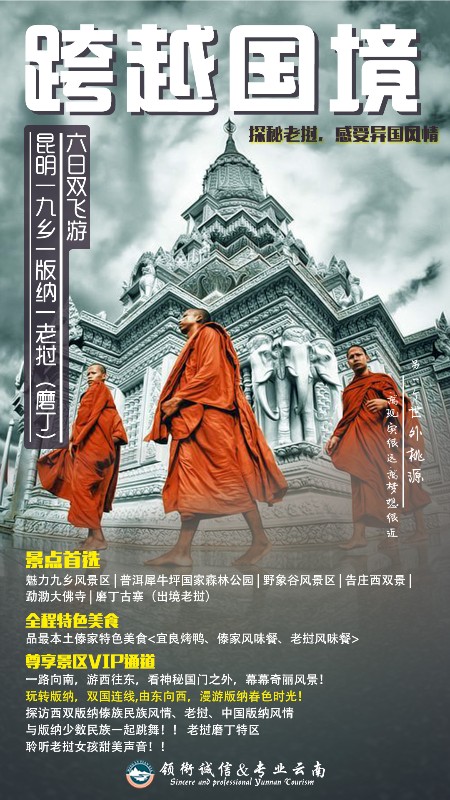 景区小交通自理:九乡索道30元/人、普洱国家森林公园电瓶车50/人、老挝办证费杂费280元/人