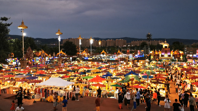随后前往【告庄西双景】为傣语,汉意为“九塔十二寨”,旨在重现古时景洪盛景,打造一个繁华昌盛的“景洪 城中之城”。根植于西双版纳傣族文化,融合大金三角、湄公河流域傣泰文化精华,引进现代前沿思想, 缔造前所未有的大金三角傣泰文明之心。【大金塔】高度是 66.6 米,寓意一江连六国,又被称为缅甸大金 塔,是告庄西双景的九塔之一。大金塔本身是以塔林的方式建造的,在主塔旁边有 4 座小的实心佛塔。在这4座小的佛塔四周,四周都有一只人面灵兽。四个门中间还供奉了不大相同的人物,每尊神前都会设蒲 团,供给供奉者。【星光夜市】夜市的食物价廉物 美,直到深夜食客还是摩肩接踵络绎不绝,凌晨两三点都不一定打得了烊收得了摊。 【六国水上市场】是国内首例唯一一个具有东南亚风情的水上市场,让中国人不出国门,也能在告庄体验到真正的六国风情。