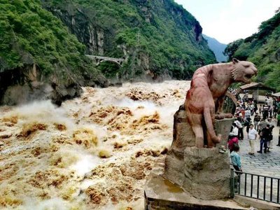 酒店早餐后乘车前往香格里拉,途经【长江第一湾】,之后沿着滇藏路继续前行,海拔不同升高,随后乘车前往有世界峡谷之最之称-【虎跳峡】,峡谷长16千米,南岸玉龙雪山主峰海拔5596米,北岸中甸雪山海拔5,396米,中间江流宽仅30-60米。虎跳峡的上峡口海拔1800米,下峡口海拔1630米,两岸山岭和江面相差