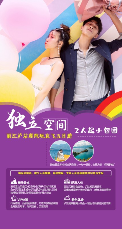 乘【猪槽船】游览泸沽湖,登【里务比岛】,观【里务比寺】,乘前旅游车开始泸沽湖的【180°环湖游(丽江)】,您即将看到中国最美的湖泊,第一站抵达【里格观景台】,在观景台您可以看到泸沽湖全貌,它已经等您几亿年了,终于等到您啦,在这里您不用拍照技术都能拍出最美的照片。