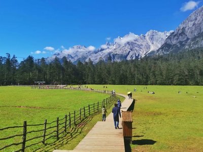 之后我们将乘【云杉坪小索道】云杉坪位于玉龙雪山主峰的半山腰,它是一片高山草甸。四周环绕着茂密的树林,树木挺拔,景色优美。草甸上绿草如茵,春夏季节山花烂漫,秋冬季节则是一片金黄或银白,四季景色各异。背后是雄伟的玉龙雪山主峰,可以近距离观赏到雪山的壮丽景色。关键是不论晴天或下雨都挡不住它的好看,拍照超级出片。
