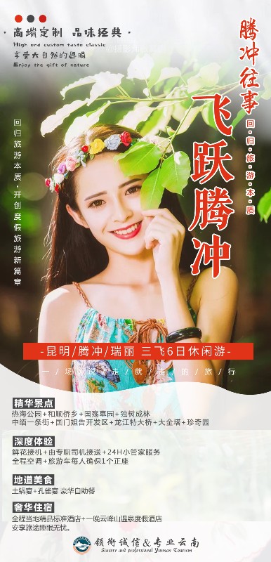 省内单程(可升级四飞)飞机,省略腾冲至昆明800多公里路程,免去舟车劳累