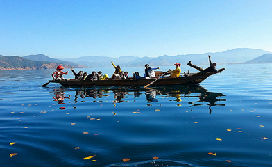 后出发前往东方女儿国—【泸沽湖】(驴友们评价云南最受欢迎的景点),沿途观赏金沙江河谷风光及小凉山风光,原始的纳西村庄与彝族村寨,抵达后前往泸沽湖三家村游船码头乘猪槽船登【里务比岛】,里务比岛位于泸沽湖的中南部,岛屿的一侧为石笋,成为天然的码头,一条蜿蜒的小道直接通往岛屿的顶部,道路旁边有许多杜鹃花以及野樱桃树。花丛的尽头为藏传佛教寺院里务比寺,岛顶有一白塔。里务比岛与谢瓦俄岛,里格岛并称为泸沽湖蓬莱三岛。之后乘车开始360度环湖,途经里格观景台,情人沙滩。