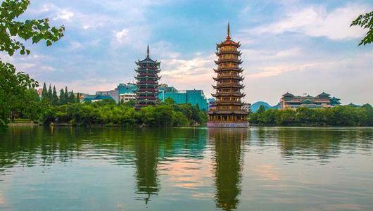 后可自由漫步游览桂林城市新地标--【日月双塔】远观(约60分钟),它座落在桂林城的中轴线上,与象山上的普贤塔、塔山上的寿佛塔,相互呼应,相互映衬,有“四塔同美”之说,是两江四湖环城水系中最著名的旅游景点。步行桂林【杉、榕湖新景】(温馨提示:司导不陪同,自行活动期间请游客注意安全。)