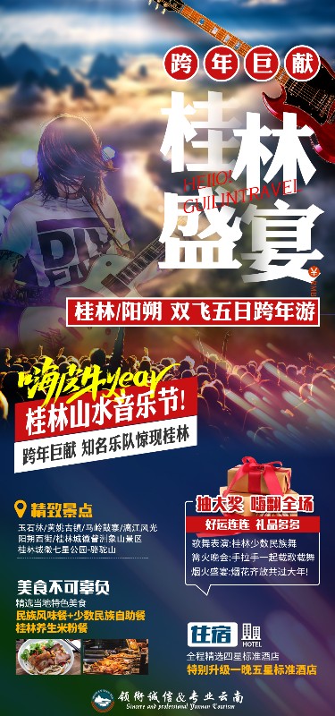 5、行程中所含的餐食,早餐为酒店房含,不用不退。正餐按产品用餐标准操作,不含酒水(特色餐除外)。桂林用餐口味较辣,游客 如果对口味有特别要求,请提前和导游沟通。