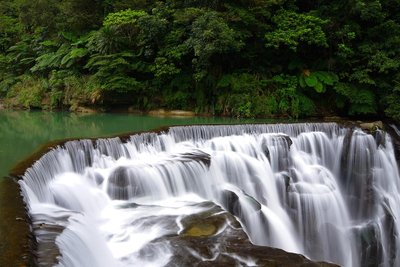 黄果树瀑布群中最宽的瀑布,是一个高21米、宽达105米的天然坝型瀑布,平水时,水流清澈,瀑布水层沿着和缓的瀑面,均匀地撒开,如一层薄薄的、半透明的面纱,又如一面面张开的素绢扇面,在阳光下泛着银光,故有人戏称为“新娘面纱”。但当洪季来临,白水河中由于携带了大量山洪冲下来的泥沙而呈土黄色,陡坡塘瀑布便消失了往日平水时的秀色,而变得异常凶猛雄壮。 这里也是《西游记》中唐僧师徒四人牵马过河的取景地。